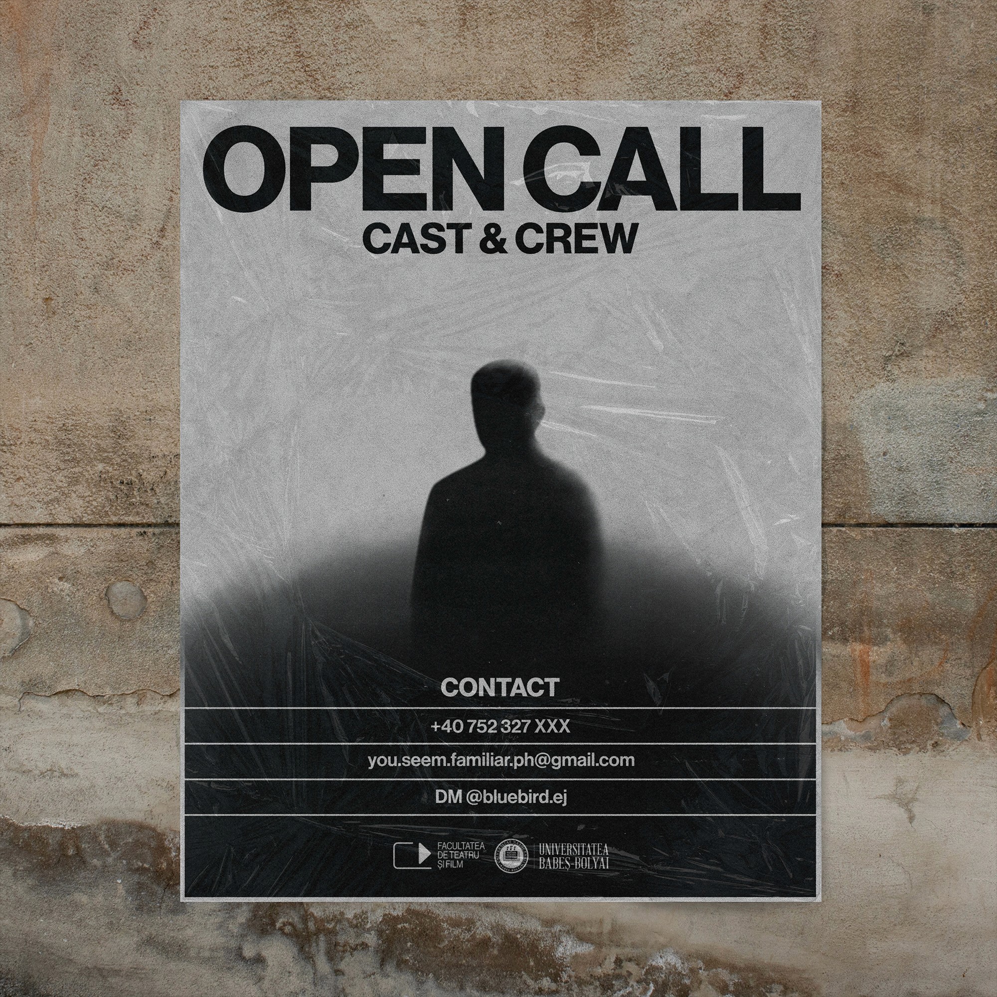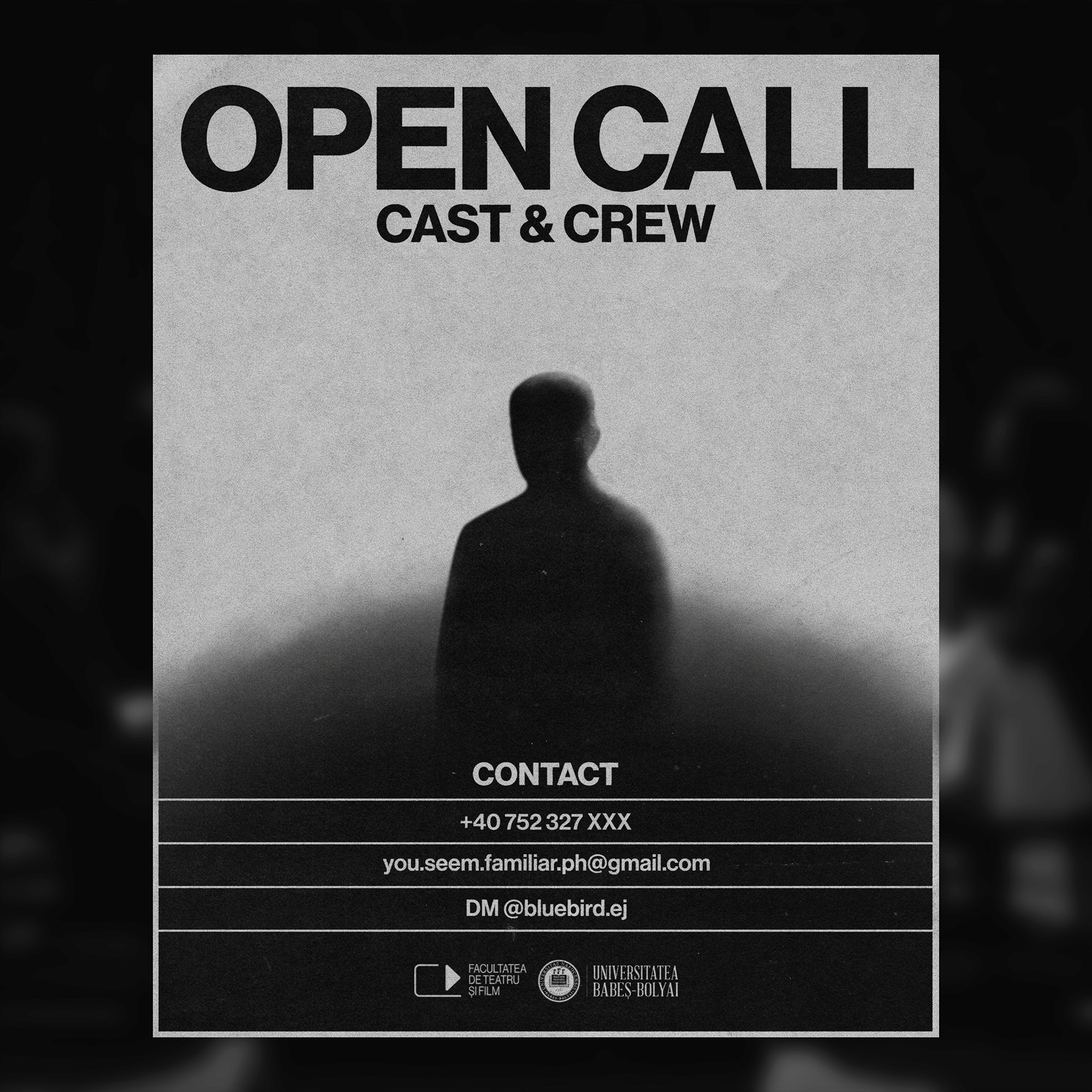 Official assets for a social media campaign aimed at finding actors and crew members for a small filmmaking project.
